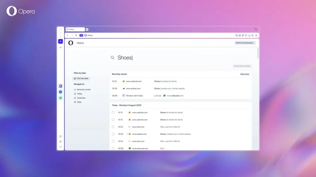 Opera One 重新设计浏览历史记录