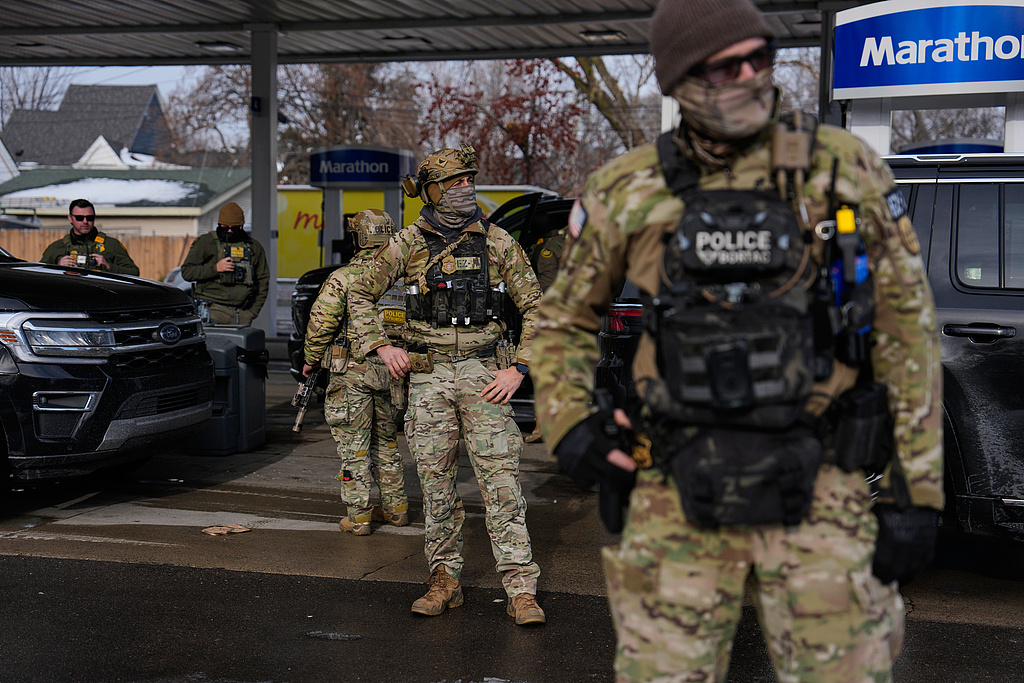 移民与海关执法局人员7日在明尼阿波利斯市进行针对非法移民的执法行动时,开枪打死37岁美国公民蕾恩·妮科尔·古德,引发当地局势紧张和全美舆论高度关注。(央视记者 许弢)
